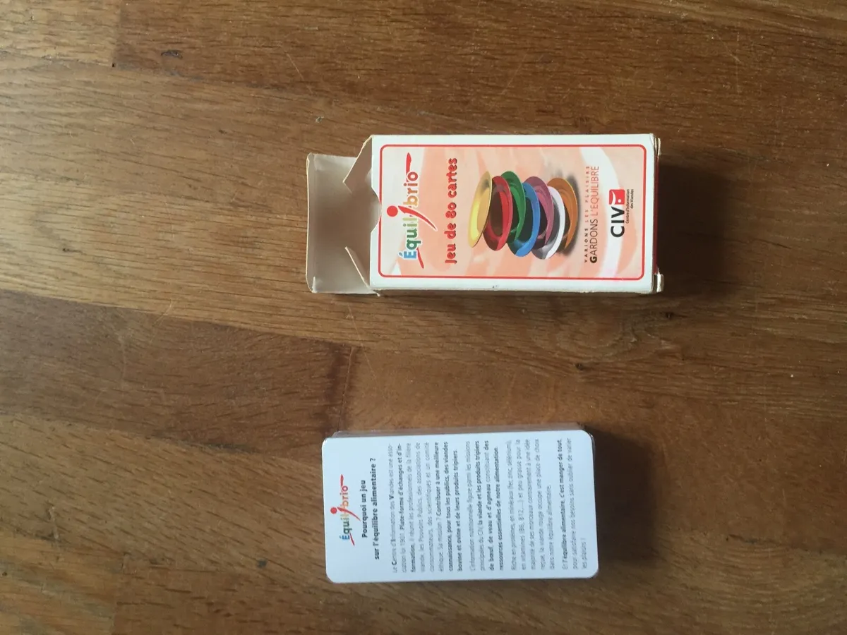 Le but du jeu : être le premier à composer, à l'aide des cartes recette, le menu complet qui convient aux besoins nutritionnels spécifiques mais aussi aux goûts de son personnage. Le jeu est pimenté de cartes "joker" et "carton rouge"... Objectifs: Permettre à chacun de découvrir et de comprendre les secrets d'une alimentation équilibrée tout en variant les plaisirs. Démontrer que l'équilibre alimentaire n'est pas une notion théorique et contraignante mais est, au contraire, une réalité qui s'inscrit naturellement dans la vie de tous les jours, quels que soient son âge, son mode de vie et ses goûts. Réaffirmer le rôle fondamental de la viande et des produits tripiers de boeuf, de veau et d'agneau dans l'équilibre alimentaire, à tous les âges de la vie. Découvrir des recettes savoureuses et simples à réaliser (montrer ainsi que plaisirs gustatif et gastronomique sont indissociables d'une alimentation équilibrée). |